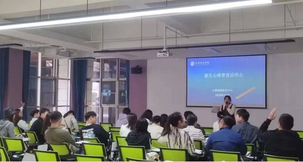 最后中心老师介绍新生心理普查工作的基本环节和重要目的,强调及时发现新生中存在的心理问题的重要性,对于潜在的心理问题辅导员要进行及时干预和预防,避免问题恶化。