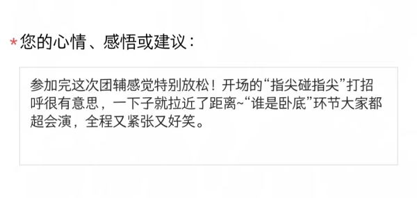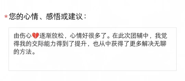 在团辅活动室里,有很多同学发送了暖心反馈,他们在这里收获了快乐和友谊,学会了在紧张压力中放松自我,自己做情绪的主人。