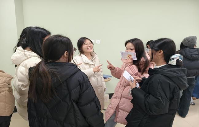 “它在课堂上可以做”“我做的时候时间过的超级快”——团辅核心环节“谁是卧底”掀起全场高潮!8人一组围坐成,拿着写有词语的卡片,既要隐藏自己的身份,又要从蛛丝马迹中找出“卧底”。有人一本正经地“胡说八道”,有人凭借精准描述误导全场,投票环节更是“反转不断”,每当“卧底”被揪出,现场就爆发出阵阵欢呼,笑声差点掀翻屋顶。“太上头了!不知不觉就玩了很长时间,既烧脑又解压!”参与同学直呼过瘾。